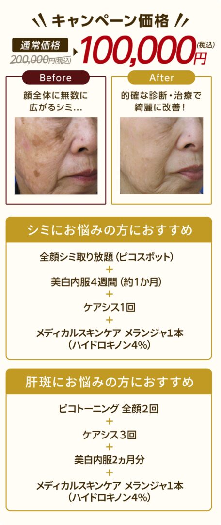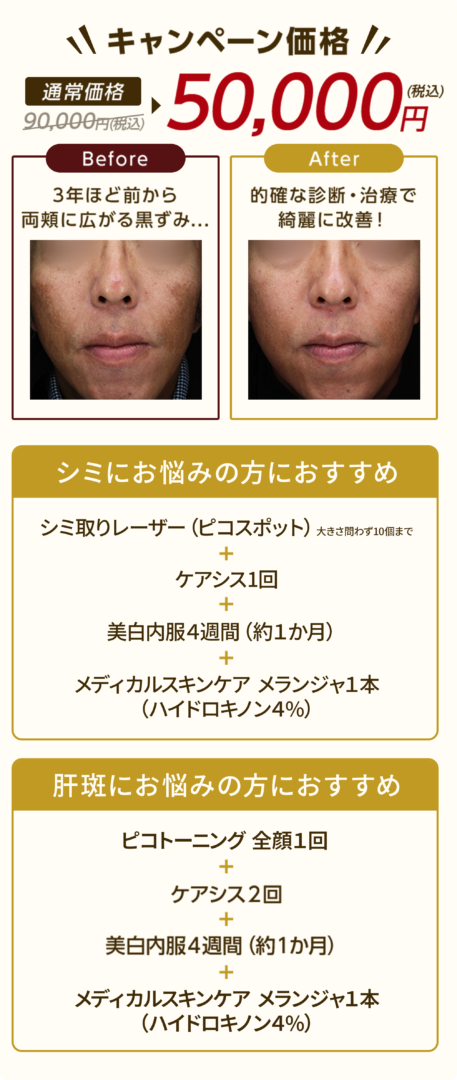 | ケミカルピーリング:サリチル酸マクロゴールを使用するため、痛みや赤みが出るなどの心配はほとんどありません。 ケアシス:赤み、腫れ、乾燥が一時的に生じることがあります。稀に、アレルギー反応や色素沈着が起こる可能性があります。 ・ライムライト:肌が生まれ変わる過程で一時的にシミが濃くなる場合がありますが、1週間程度で徐々に薄くなり始めます。 ・医療脱毛:まれに赤みが生じますが、数時間から数日ほどで落ち着きます。 ・ヒアルロン酸:軽い腫れや赤み、内出血が見られることがありますが、数日で自然に治まります。痛みや異物感も一時的です。 ・二重埋没法:皮下出血が起こることもありますが、数日から2週間程度で落ち着きます。軽度な腫れもみられますが、1~2週間で引きます。 ・切らない目の下の脂肪取り(脱脂):腫れ・内出血・目がかすむ※術後2~3日は泣いた後のような、むくみが生じる場合があります。 |