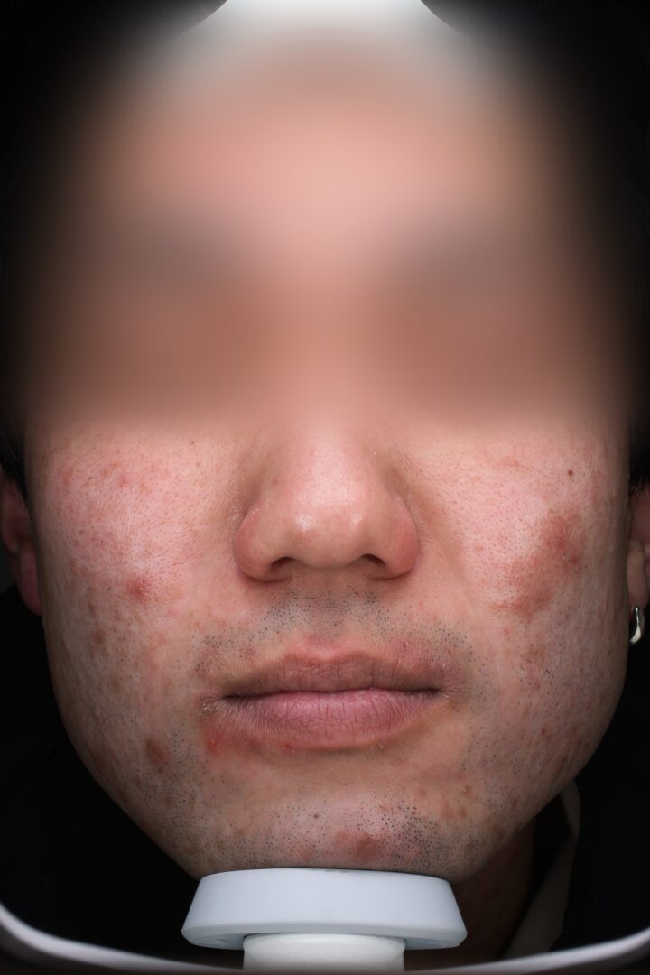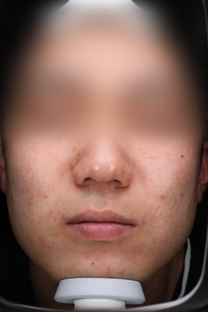 | 医師 コメント | ニキビができ始めてから4〜5年が経過し、炎症を伴う大きめのニキビを繰り返していることを主訴に来院された患者様です。 ニキビが治っても赤みがなかなか引かず、ニキビ跡として残ってしまうことで、「肌の調子が安定しない」と感じていらっしゃいました。 治療前に行ったVISIAによる肌分析では、茶色く示される色素沈着が顔全体に点在していることが確認できました。 VISIAの茶色いシミ解析は、すでに肌表面に現れているメラニン色素を可視化したもので、画像上では茶色い斑点として表示されます。この結果から、ニキビの炎症を何度も繰り返したことでメラニンが蓄積し、ニキビ跡として色素沈着が残っている状態であると判断しました。 また、炎症による刺激が長期間続いていた影響で赤みが残りやすく、血管の色が透けて見えやすい肌状態となっており、加えてターンオーバーの乱れにより、ニキビ跡がなかなか薄くならないことも症状が長引いている原因の一つと考えられました。 そこで治療では、まずイソトレチノイン20mgを6か月間内服し、皮脂分泌を抑えることでニキビの元となる環境そのものを改善しました。さらにニキビ内服治療を計9か月間継続し、炎症を内側から抑えることで、新しいニキビが次々とできてしまう悪循環を断ち切ることを目的としています。 あわせてケミカルピーリングを6回行い、古い角質を除去することで乱れていたターンオーバーを整え、毛穴詰まりや色素沈着が改善しやすい肌状態へ導きました。 さらにケアシスを12回併用し、抗炎症成分や美肌成分を肌の奥まで届けることで、刺激を受けやすくなっていた肌を内側から立て直し、赤みやニキビ跡の改善をサポートしています。 約1年半にわたり段階的に治療を継続した結果、皮脂量が安定し、新しいニキビができにくい肌状態へと改善しました。 VISIA分析においても、治療前に多く確認されていた茶色いシミの分布が減少しており、ニキビ跡の色味が薄くなっていることが客観的なデータとして確認できる良好な経過です。 炎症を繰り返すことで起きていたニキビ・赤み・ニキビ跡の“負のループ”から抜け出し、現在は肌状態が安定しやすくなっています。 |