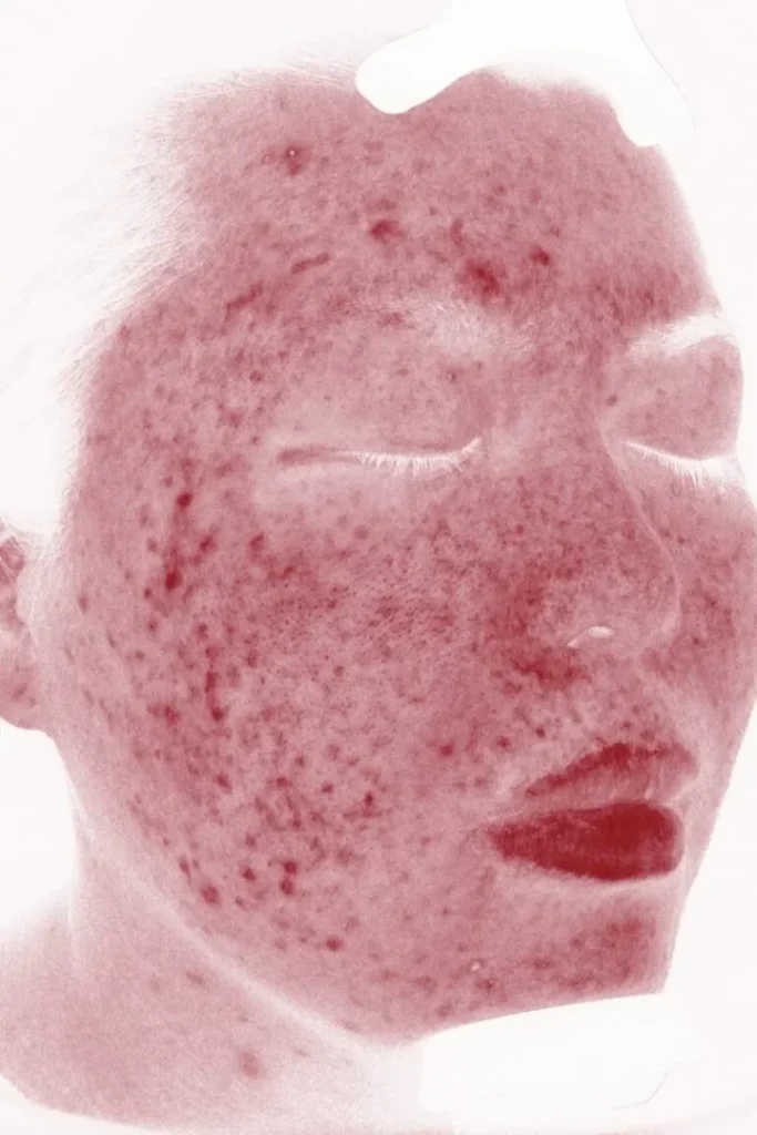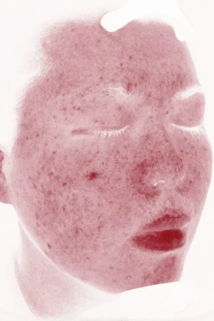 ※赤い部分が炎症や隠れたニキビとなります