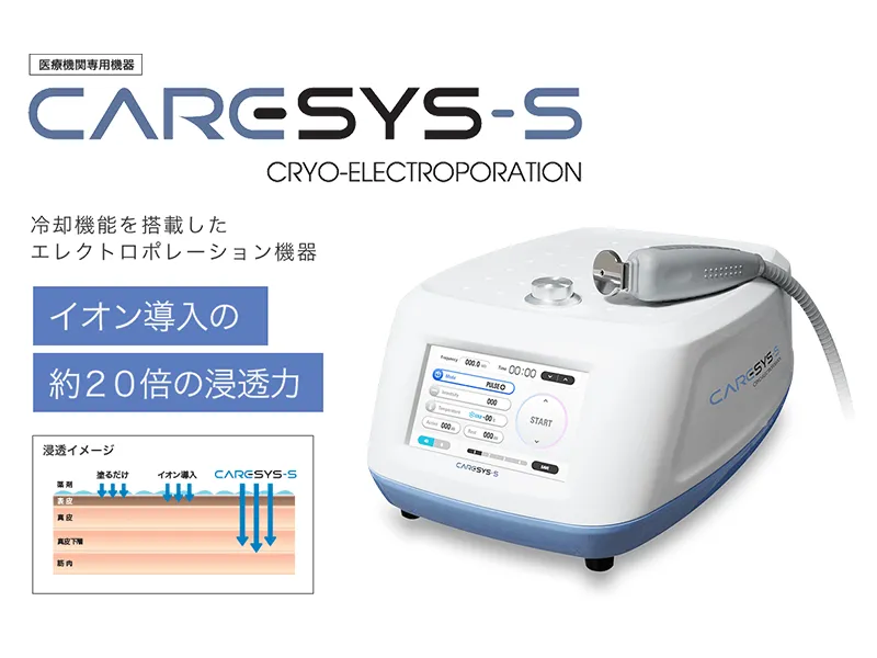 イオン導入と比較して約20倍の浸透効果があるといわれており、ヒアルロン酸・トラネキサム酸・ビタミン類・成長因子などを肌の奥までしっかり届けることができます。当院では「クリーン&ブルームプロS(Clean Bloom Pro S)」を使用しています。